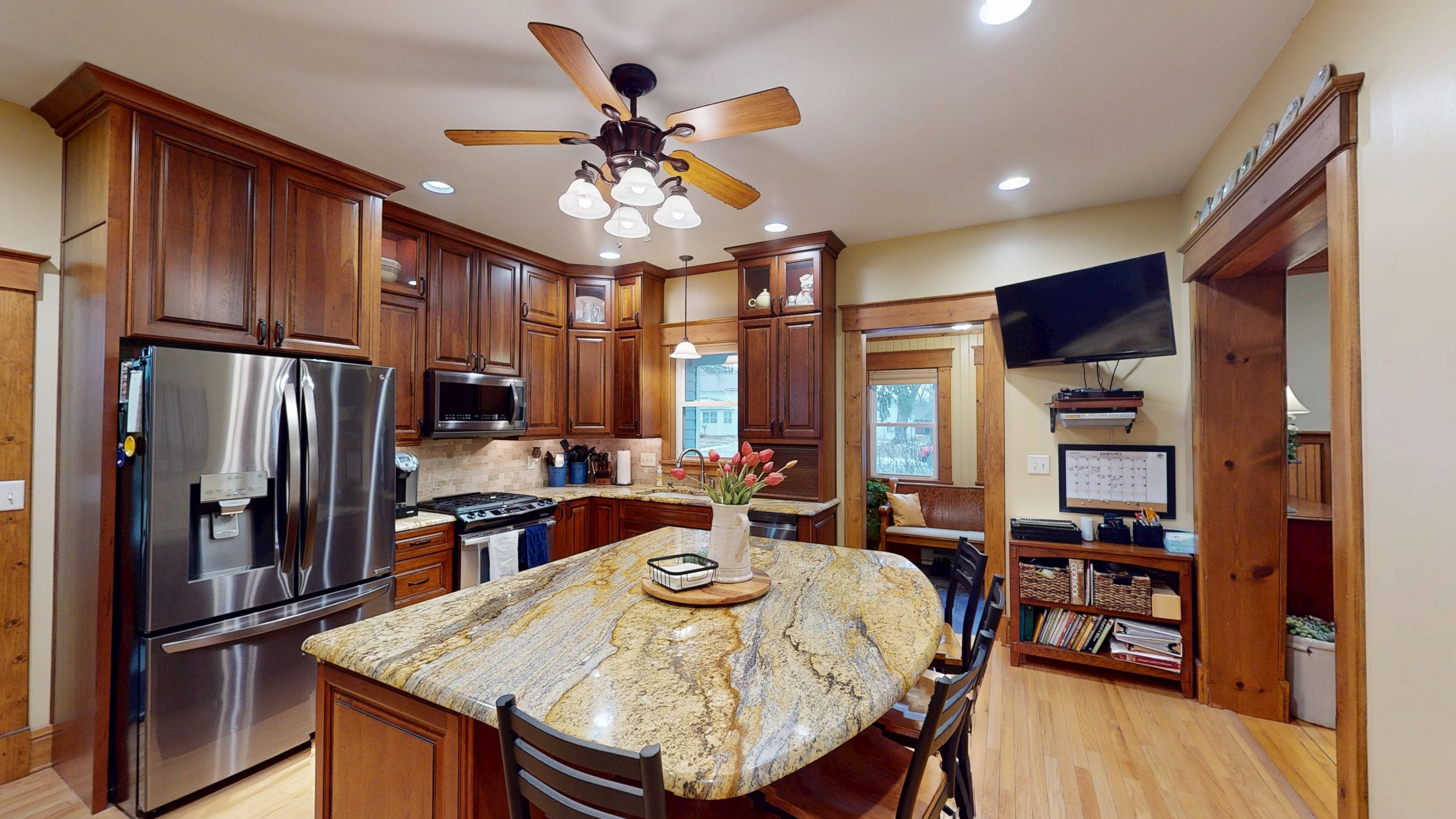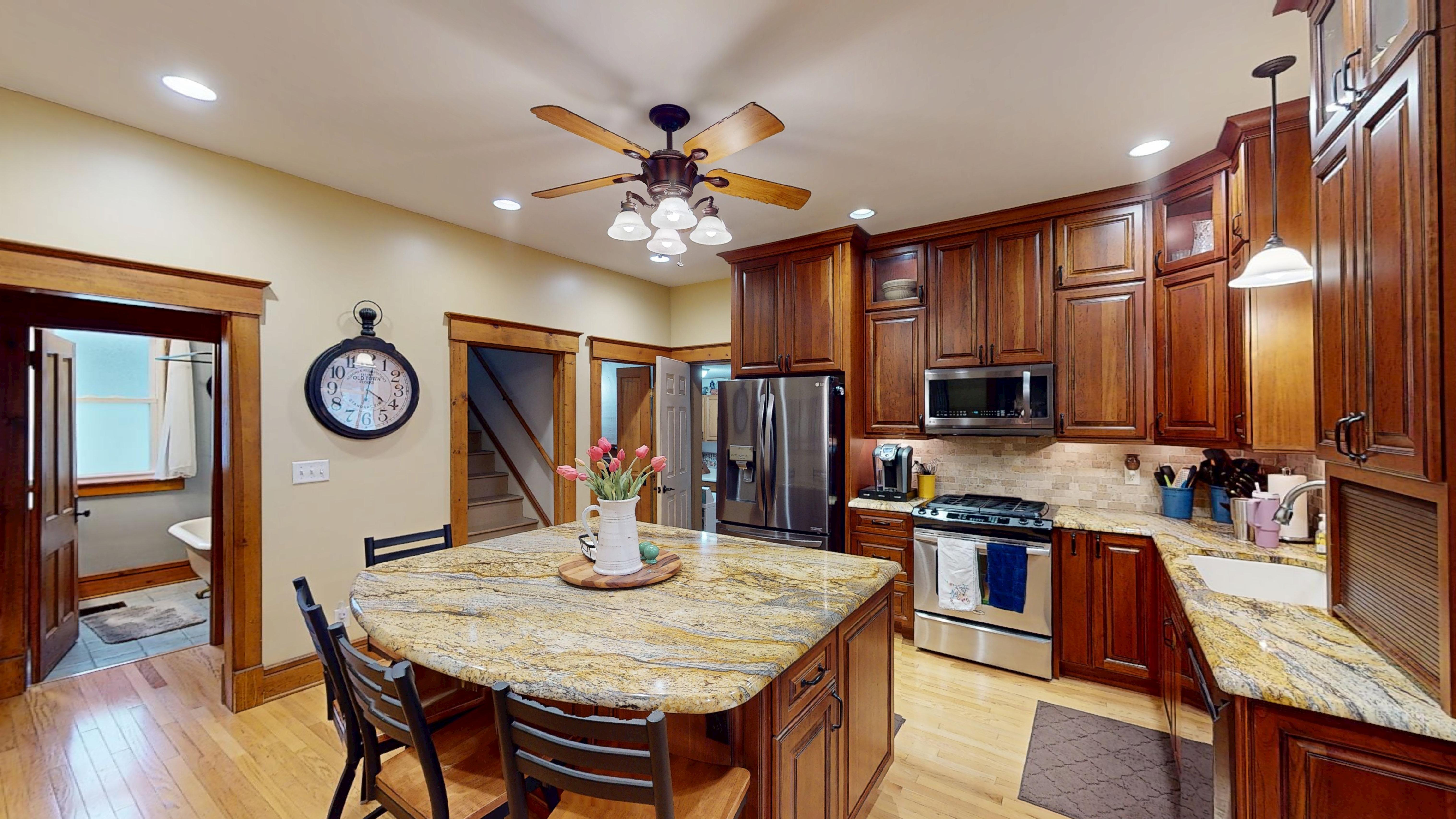 Step inside and the updates continue. The fully remodeled kitchen showcases custom cherry wood cabinetry and beautiful granite countertops, creating a warm and inviting space to cook and gather. Original hardwood floors run throughout most of the home, adding timeless character and charm.